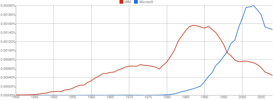 This has the potential to be a great quantitative research tool. Here are some of the more interesting graphs I’ve developed after fiddling with Ngram for the better part of an hour: